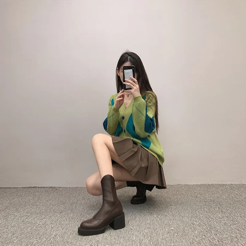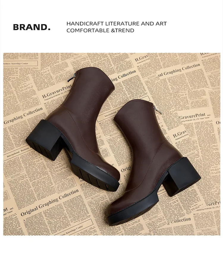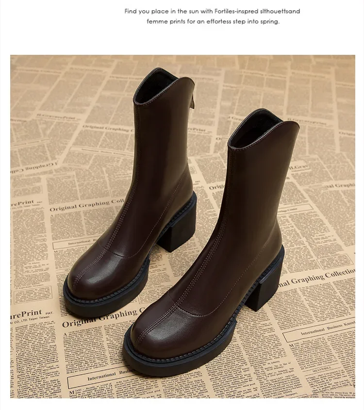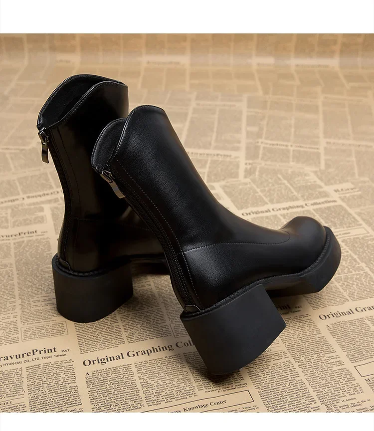 New high-heeled women’s ankle boots, fashionable women’s thick soled shoes, British style boots, women’s waterproof boots